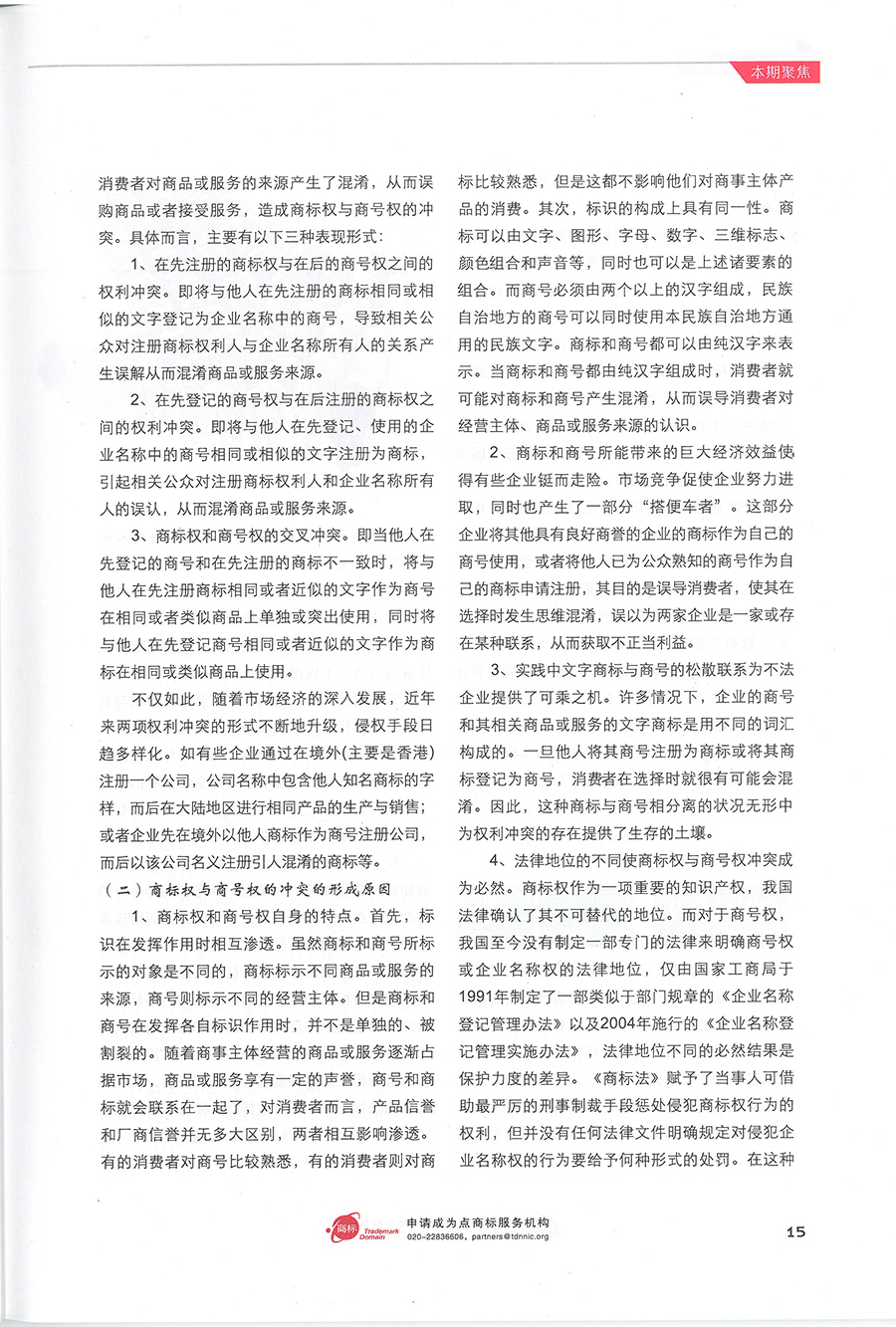 集佳文章《商标权与商号权的权利冲突分析》在《中华商标》发表