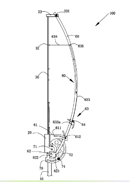 当所述弧形支架绕着所述第一连接件转动时,所述弧形支架的转动使所述刀片产生弯曲变形。