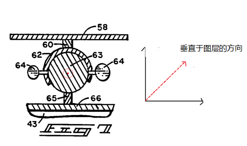 此外,审查员将沿着竖直方向的平面,即壳体的侧面视为案例中的基础元件的延伸面。显然,如果将垂直于图层的方向视为转动轴线,转动轴线并非如在案例的图2中所示出的那样不仅平行于基础元件的延伸面而且居中地沿着运动元件伸展,而是与踏板轴43垂直。然而,在案例中,旋转轴线平行于基础元件的延伸平面并且居中地伸展穿过所述运动元件。因此,在对比文件3中,无论沿着球的哪个方向的轴线,都不可能同时平行于基础元件的延伸面并且居中地伸展穿过踏板轴。对比文件3没有公开修改后的权利要求1中的“所述转动轴线平行于所述基础元件的延伸面并且居中地沿着所述运动元件伸展”。