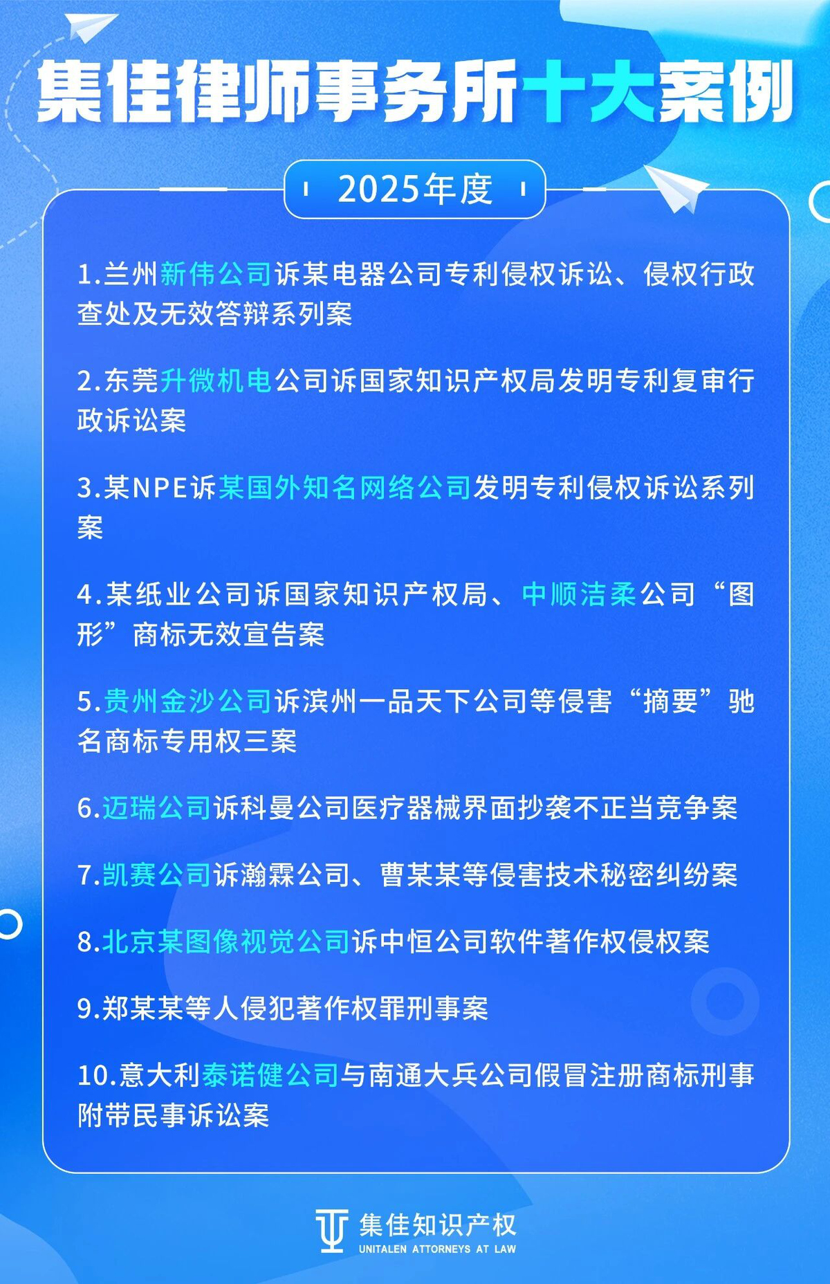 >集佳律师事务所>新闻动态>集佳律师事务所2025年度十大知识产权典型案例
