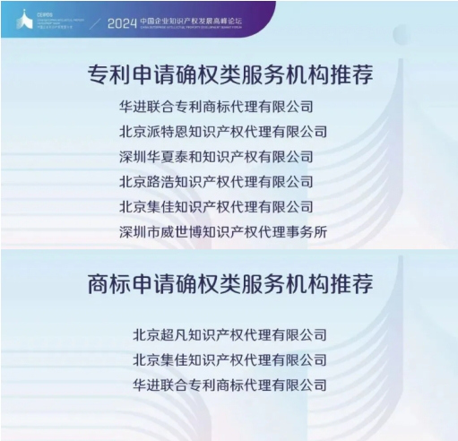 近日,由中国企业知识产权发展沙龙主办的“2024中国企业知识产权发展高峰论坛”在深圳隆重举行,论坛上发布了中国企业知识产权发展沙龙知识产权服务机构推荐名单,集佳知识产权凭借出色的专业实力和良好的客户口碑,荣登“专利申请确权类服务机构”“商标申请确权类服务机构”榜单!