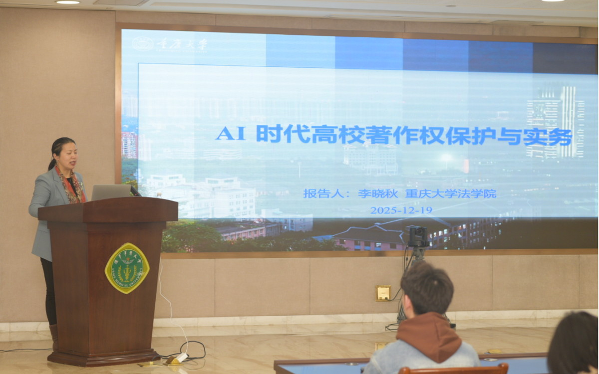 讲座第一环节,重庆大学法学院李晓秋教授以"AI时代高校著作权保护与实务"为主题展开分享。作为国家社会科学基金重大专项首席专家、全国知识产权领军人才,李教授结合"AI文生图""AI辅助科研论文撰写"等典型案例,深入解析了AI生成内容的作品属性判定标准与著作权归属规则,明确区分了科研人员主导创作与纯AI生成的不同法律场景。针对高校著作权保护核心需求,李教授详细梳理了职务作品与非职务作品的界定边界,重点解析了科研项目资助成果、教学课件、学术论文的权属划分,并系统讲解了著作权登记流程、材料要求及加急办理渠道。结合军校数据特性,李教授还就临床试验数据、流行病学调查数据等科研数据的著作权可保护性判定、登记适用场景及采集加工过程中的合规要点进行了专项指导,为科研人员规避数据知识产权风险提供了实操指南。