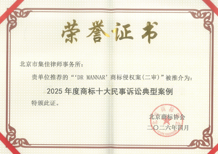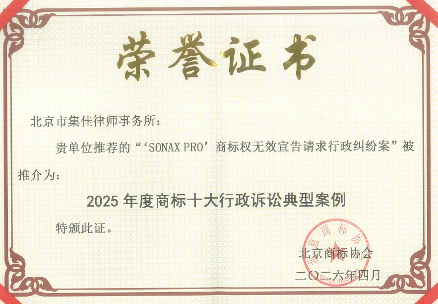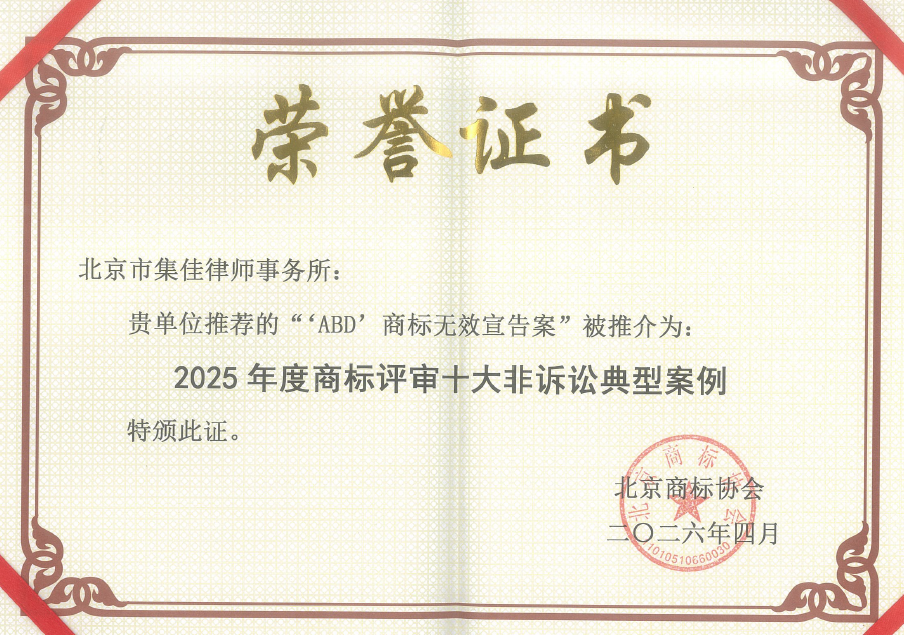 集佳代理的5个案件入选2025年度典型案例,充分彰显了集佳在商标法律服务领域的卓越实力和专业水平: